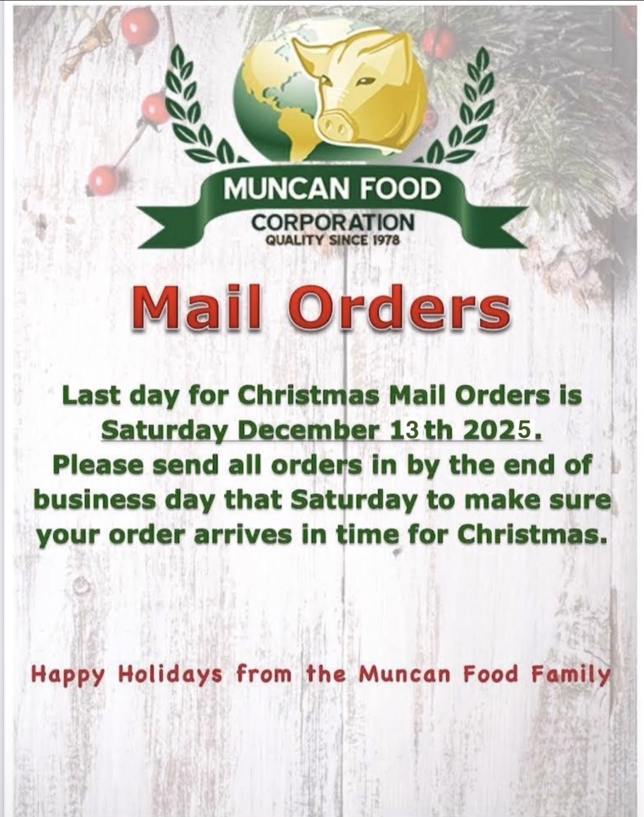 *Mail-Order forms can be e-mailed to us at cs@muncanfoodcorp.com.