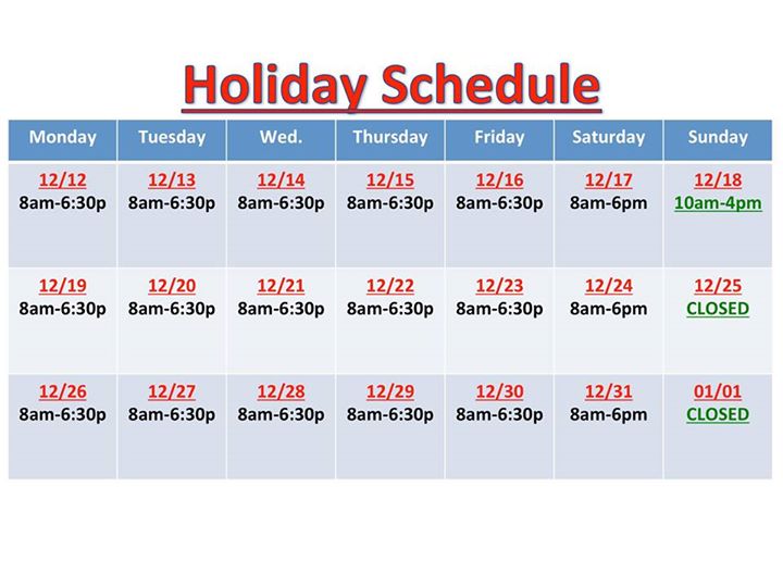 We want to update everyone on our upcoming Holiday Schedule. We will be closed on Christmas and New Years Day, but will re-open on Sunday 12/18/2016 to give our customers an extra chance to get their holiday favorites! Source Read More..